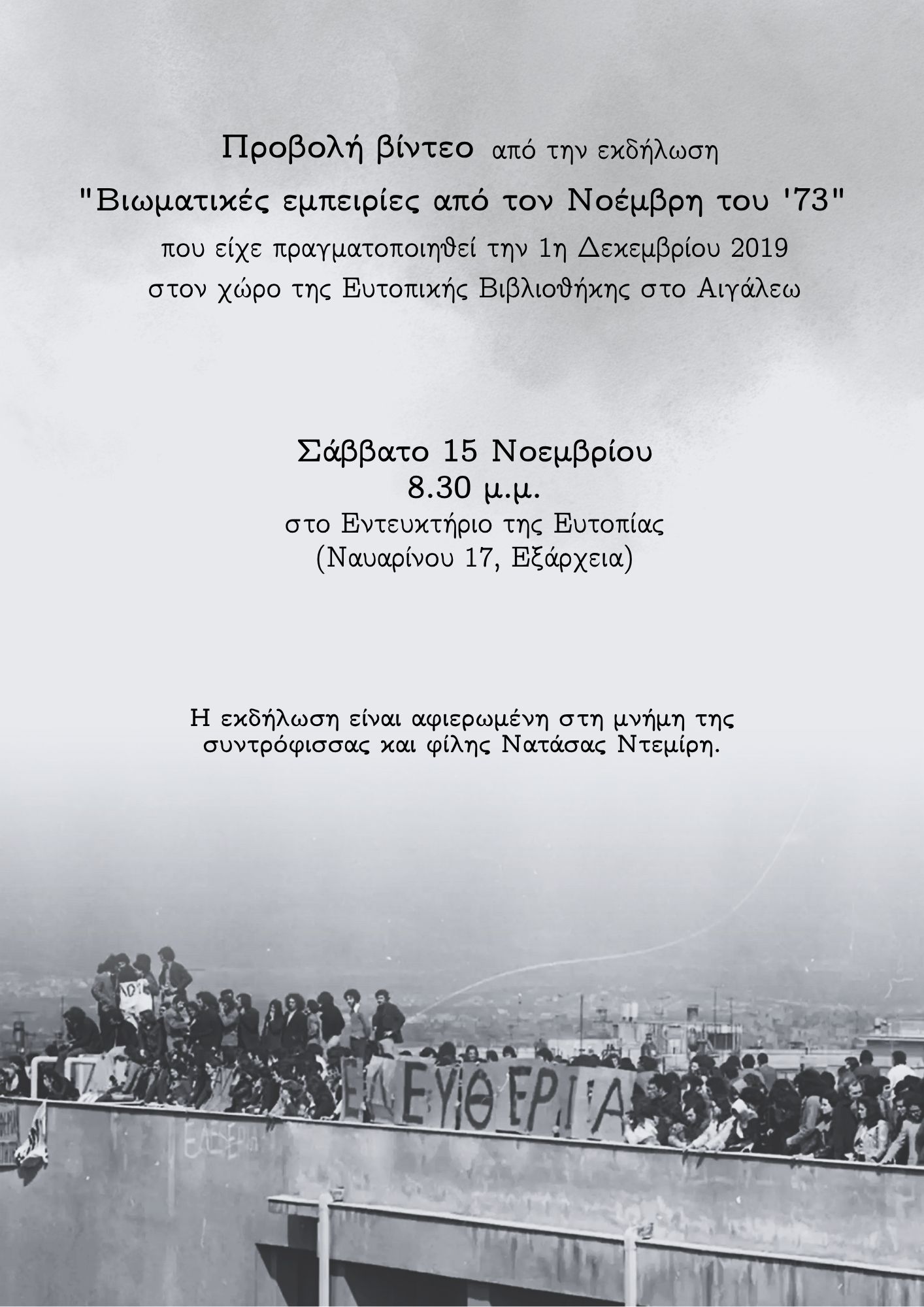 "Βιωματικές εμπειρίες από τον Νοέμβριο του '73"